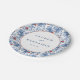 This elegant wedding plate features a classic floral pattern with blue and red flowers set against a white background, creating a romantic and sophisticated look. The design includes a central circular frame that highlights customisable text in a stylish serif font, perfect for personalising your special day. Ideal for formal occasions, the intricate floral motifs and clean lines convey a timeless aesthetic, making it a beautiful addition to any wedding celebration.