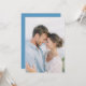 This wedding invitation features a tender moment between two individuals, captured in a soft-focus photograph that evokes warmth and affection. The design showcases a serene colour palette of muted blues, whites, and skin tones, creating a romantic and dreamy atmosphere. Floral patterns on the woman's blouse add subtle texture, enhancing the gentle, idyllic feel. Perfect for couples seeking an intimate and heartfelt touch, this invitation is ideal for celebrating love and connection.