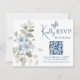 Romantic Blue Floral RSVP QR Code Photo Wedding Card