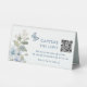Romantic Dusty Blue Watercolor Floral Wedding Photo Sharing QR Code Tabletop Sign features dusty blue celeste and delphinium flowers with eucalyptus greenery accented with butterflies. Add your custom QR Code for guests to share their photos of your special day. Perfect for weddings, rehearsal dinners, engagement parties and more. More sizes available. Designed for you by Evco Studio www.zazzle.com/store/evcostudio
