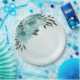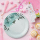Unique wedding paper plate featuring romantic blue flowers and green leaves.
