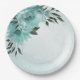 romantic blue flowers & green leaves paper plate