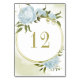 Romantic blue flowers greenery gold wreath table number