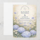 A romantic wedding design featuring lush dusty blue hydrangeas paired with soft ivory roses and delicate meadow blossoms. The florals frame the layout in a graceful, symmetrical garden composition accented by subtle classic detailing. Set against a warm parchment background, the palette feels refined, timeless, and effortlessly elegant. Perfect for a sophisticated celebration with a soft blue botanical aesthetic.