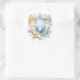 Romantic Blue Monogram Crest Wedding Classic Round Sticker