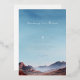 This wedding invitation features a serene landscape with a gradient sky transitioning from soft blue to warm earth tones, creating a tranquil and romantic atmosphere. The design includes elegant typography with cursive script for names and bold serif fonts for key details, enhancing its sophisticated appeal. Customizable elements allow personalization while maintaining an overall sense of warmth and anticipation. Perfect for couples seeking an inviting and stylish way to share their special day.
