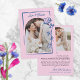 Romantic Blue Pink Rose Illustration Photo Wedding Thank You Card