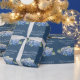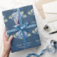 Romantic Blue Watercolor Hydrangea Flowers on Navy Wrapping Paper