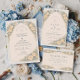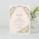 A romantic vintage rose arch frames this timeless garden wedding design, featuring soft blush blooms, sage greenery, and a warm parchment background. The structured botanical border creates an elegant vertical silhouette, while the classic serif typography adds refined, old-world charm. Perfect for formal garden ceremonies, estate venues, and couples who love traditional floral elegance with a European touch.