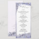 This elegant wedding menu card is beautifully designed with delicate watercolor florals in shades of purple and grey, creating a vintage and timeless charm. Perfect for romantic receptions, this menu includes starters, entrée choices of beef, chicken, or fish, and a decadent wedding dessert. The antique floral artwork and graceful typography make this menu not only a functional dining guide but also a keepsake that complements the entire wedding stationery suite. With its old-style watercolor theme, botanical detailing, and sophisticated design, this menu card adds both beauty and refinement to the wedding table setting.