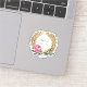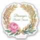A beautiful vinyl sticker with a pink peony on an elegant laurel wreath frame with gold accents. Perfect for personalising your bridal shower or wedding favours and decor. Personalise with your Bride and Groom or Bride's name and wedding or shower date.