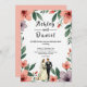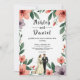 This elegant watercolor floral wedding invitation is perfect for a modern wedding. The romantic design features a sleek watercolor floral frame with a bride and groom illustration and black calligraphy on a white background.