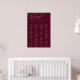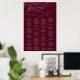 This romantic burgundy calligraphy alphabetical seating chart poster is perfect for a simple wedding. This sign can be used to organise your guests alphabetically or by table number. The modern classic design features fancy swirls and whimsical flourishes with gorgeous elegant hand lettered faux champagne gold foil typography. This wedding poster includes enough room for up to about 120 guests. Make room for more (or less) guests by clicking the "customise" button and decrease or increase the size of the font. In addition to the placement of each guest, personalise this sign with the names of the bride and groom and the wedding date.