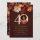 Celebrate in timeless style with this romantic vintage floral 40th birthday invitation featuring bold autumn blooms, a deep burgundy background, and elegant script details. The large milestone number paired with a personalised photo makes this design both classic and unique, perfect for creating a keepsake-worthy celebration. Customise with your event details for a sophisticated and memorable party.
