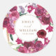 Romantic Burgundy Floral Wedding couple names Classic Round Sticker