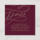This romantic burgundy QR code wedding details enclosure card is perfect for a simple wedding. The modern classic design features fancy swirls and whimsical flourishes with gorgeous elegant hand lettered faux champagne gold typography.