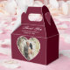 Custom burgundy wedding photo thank you favour box featuring a heart shaped photo frame.
