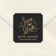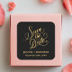 Romantic Calligraphy Black Gold Foil Save the Date Square Sticker