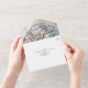 This romantic calligraphy faded photo the wedding of all in one invitation is perfect for a simple wedding. The modern classic design features fancy swirls and whimsical flourishes with gorgeous elegant hand lettered typography. Hand write your guest addresses on the back of the folded invitation, or purchase coordinating guest address label stickers (sold separately).
