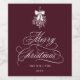 Romantic Calligraphy Merry Christmas Burgundy Wine Label