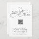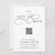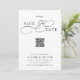This romantic script save the date announcement card is perfect for a simple wedding. The minimalist black and white design features elegant and romantic swirly calligraphy lettering with a QR code.