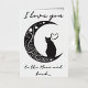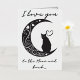 The addition of the phrase "I love you to the Moon" could make this design an ideal token of affection for a loved one, expressing deep feelings with a cosmic twist. The sentiment is universally understood, yet uniquely presented, making this postcard a perfect way to convey love on special occasions or just as a sweet, unexpected surprise. The serene mood of the design also makes it suitable for framing, serving as a timeless reminder of affection.