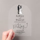 This elegant black-and-white arch acrylic wedding invitation is perfect for a modern wedding. The simple design features elegant black calligraphy and a bride and groom illustration on a clear transparent background. The invitation card includes the wedding details on the back instead of paying for a separate enclosure card.