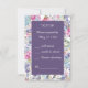 This wedding RSVP card comes in different sizes, shapes and papers. It is customisable with your dates, monograms and other backgrounds. It shows a harmonious blend of floral colourful watercolor wildflowers and greenery. The minimal violet, lilac overlay is for your customisation. Step into an oasis of refinement with an elegant floral lavender garden wedding. Different Flower blooms and lush greenery come together to craft a sophisticated atmosphere that epitomises timeless beauty. Hobinishop