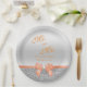 Elegant sparkly Wedding Paper plates with a classy romantic coral bow and ribbon image on a pretty shiny silver glitter and silver gradient background. All text is fully customisable to meet your requirements. If you need help to customise your product or would like matching products please contact me through my store and i will be very happy to help you.