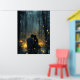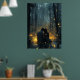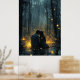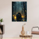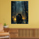 Romantic Couple in Forest with Glowing Fireflies Poster