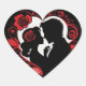 Two silhouetted lovers share a tender moment within a decorative heart filled with red roses, conveying romance, intimacy, and devotion in a bold, graphic style suitable for love and Valentine's themes.