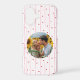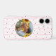 This romantic iPhone 17 case showcases a circular photo area set in a dreamy sunflower field scene, surrounded by delicate pink vertical stripes and tiny heart accents for a soft, love‑filled aesthetic. The design captures the feeling of golden hour in a sunflower meadow, making it ideal for couples who want a sunny, joyful look on their everyday phone accessory.