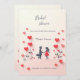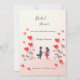 This bridal shower invitation showcases a charming silhouette of a couple holding hands, surrounded by vibrant red hearts and delicate floral accents. Set against a soft pastel pink background, it evokes a sense of romance and whimsy. Perfect for love-themed designs, Valentine's Day, anniversaries, or wedding-related creations, this piece combines playful elegance with heartfelt sentiment.