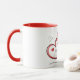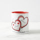 Customise this cute romantic mug with the names of you and your special person (or pet) Give as a birthday, engagement, or romantic gift or buy it for yourself to remind you of the love of your life. White background with two red and white hearts with script.