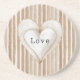 Romantic Cream Heart Brown Stripes Love Coaster