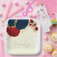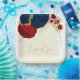 Romantic dark red & navy blue flowers gold paper plate