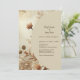 Invite your guests with timeless elegance using this dreamy floral wedding invitation. Blush and beige peonies, garden roses, and soft wildflowers frame your wedding details beautifully against a warm brown background with golden shimmer accents. Designed for rustic, boho, and vintage-inspired weddings, this invitation blends botanical softness with refined charm. Fully customisable with names, date, and venue. Part of a coordinated floral suite with matching RSVP cards, menus, signage, and more. This design was created using AI technology. Click ‘Personalise’ to customise your invitation today!