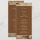 Combine elegance and function with this all-in-one menu and program card, adorned with romantic blush and beige florals. Roses, peonies, and soft botanicals bloom against a warm brown background with golden textures, creating a dreamy vintage look. Ideal for rustic, garden, or romantic weddings. Fully customisable to include ceremony timeline and meal selections. Part of a coordinated floral wedding suite. This design was created using AI technology. Click ‘Personalise’ to customise your wedding menu and program card today!