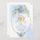 Romantic Dusty Blue Floral Gold 80th Birthday Invitation