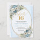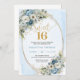 Romantic Dusty Blue Flowers Sweet Sixteen Invites