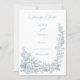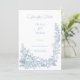 This romantic and classic design features a lush border of elegant line drawn roses, mixed flowers, lily-of-the valley, foliage and vines in a timeless dusty blue color. Also included are editable text fields, custom calligraphy text and a stunning floral crest with space for your initials.