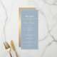 Indulge your guests in culinary delight with our romantic dusty blue wedding menu. Featuring a chic gold rope heart and simple script, this menu exudes elegance and sophistication.