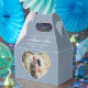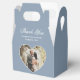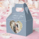Custom dusty blue wedding photo thank you favour box featuring a heart shaped photo frame.