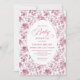 Celebrate your upcoming baby shower with this elegant French toile de Jouy rose invitation, designed in soft dusty pinks, blush, and pink and white floral tones. Vintage rose patterns, delicate flowers, and refined rose gold accents create a timeless, romantic look perfect for a classic baby shower theme. Professionally printed by Zazzle, this invitation features crisp detail, rich color depth, and a smooth, premium finish that highlights every floral detail beautifully. Fully customizable and easy to personalize, it arrives polished and photo-ready, making it a charming and memorable way to invite guests to celebrate your special day.
