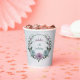 Unique paper cup featuring romantic dusty purple and blue flowers and green leaves.