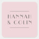 Elements: Roses and peonies on a dusty rose background. Your details are framed in a modern geometric frame. Modern sans serif fonts are used for a clean look. Colours: dusty rose, burgundy, marsala, mulberry, blush, mauve, cream, plum, green. Themes: romantic, botanical, boho, natural, enchanted garden, vintage, country. Bohemian garden. Collection: Romantic Dusty Rose Peony Modern Frame Wedding Collection. Product Type: Names Sticker