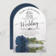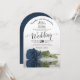 This beautiful wedding invitation features a photograph of a long-stemmed dusty steel blue or blue grey coloured rose laying on its side reflecting in a pool of water with ripples and waves. The typography features an elegant script calligraphy and the wording is formal making this invitation both modern and classic. The back is a beautiful mottled deep blue colour. Gorgeous way to invite your friends and family to share in your special day.