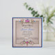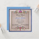Beautiful blue and tan bridal shower invitation done in a square shaped. Elegant graphics of a gold tone framed tan text area is decorated, at the top and bottom, with romantic gilded flowers with a blue outer frame. Personalise all the text to suit your special event. Lovely keepsake invitation the bride to be will love.