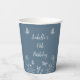 Unique simple wedding paper cup featuring romantic and elegant white flowers and butterflies on dusty blue background