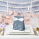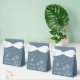 Unique simple wedding favour box featuring romantic and elegant white flowers and butterflies on dusty blue background